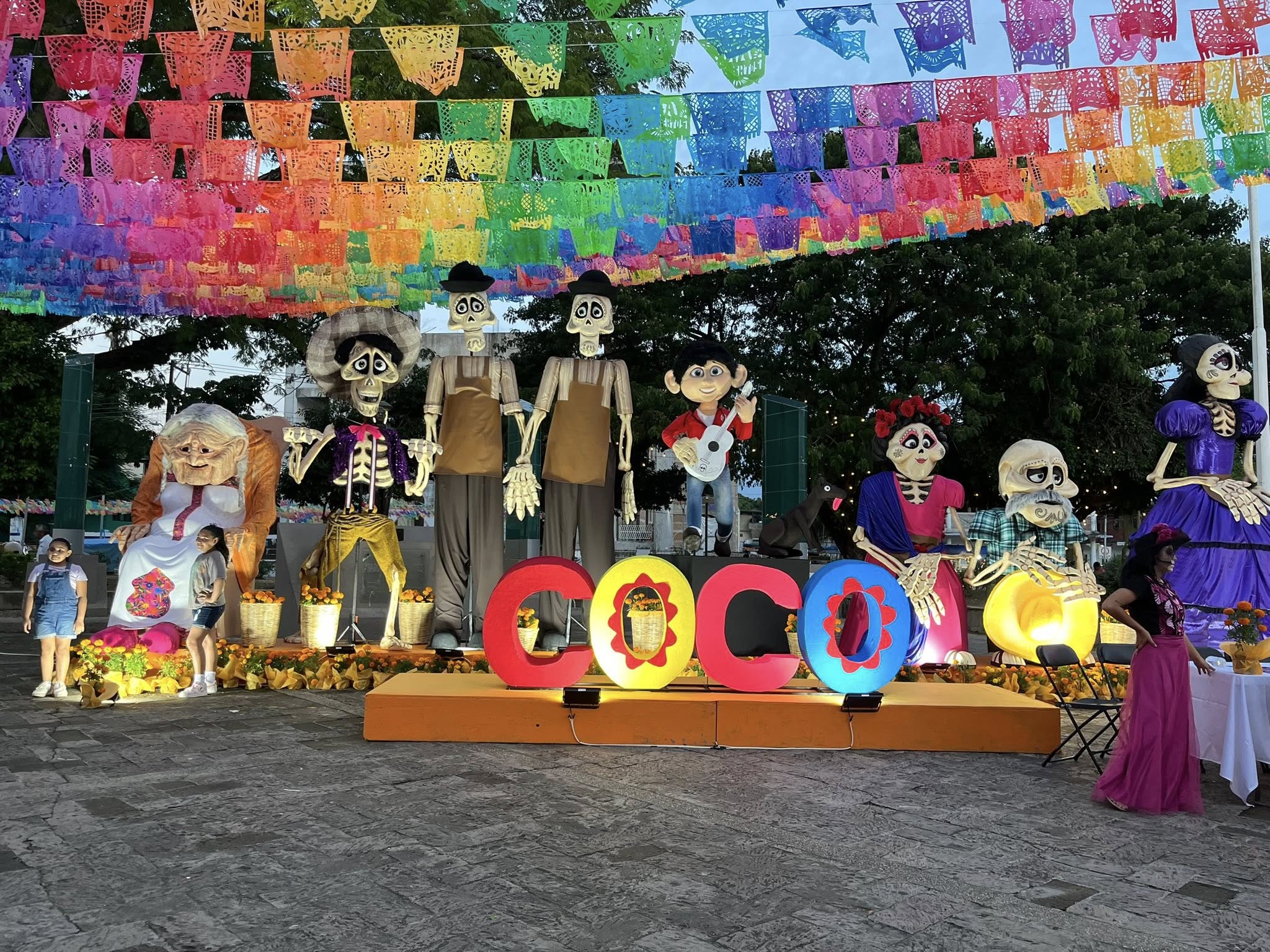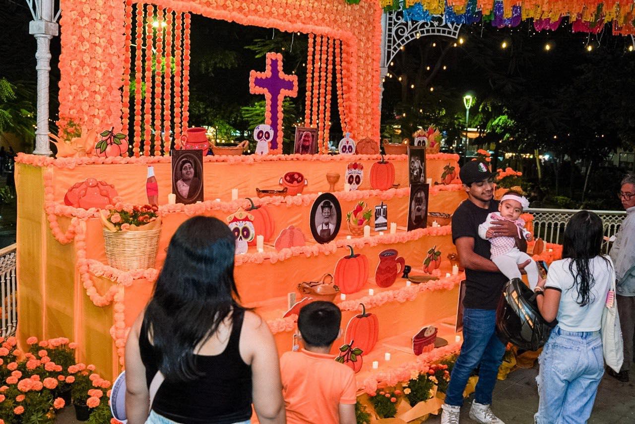 Tuxtepec, Oax.- Como nunca antes la explanada principal de Tuxtepec se llenó de color, tradición y belleza con una hermosa decoración alusiva al Día de Muertos; detalles de identidad y modernidad para darle horas de satisfacción a adultos y niños por igual.